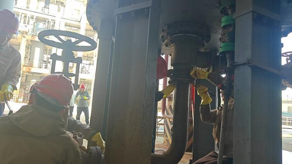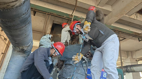 本次檢修任務(wù)繁重,但檢修人員卻干勁十足。他們有的拆卸螺栓,有的進行吊裝,有的開展焊接……他們配合默契,動作精準(zhǔn),工作井然有序。他們以勇于擔(dān)當(dāng)?shù)呢?zé)任感和時不我待的使命感攻克難關(guān),用實際行動勾勒出了一幅幅彰顯勞動之美的畫卷。